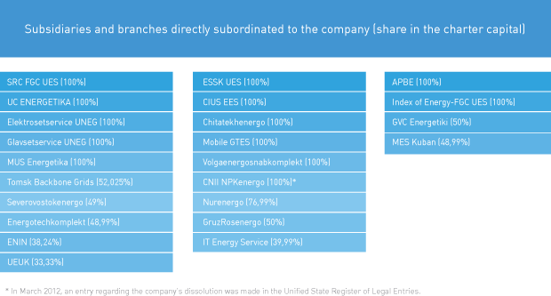 As of December 31, 2012, Federal Grid Company has 22 subsidiary and dependent companies (SDCs) operating